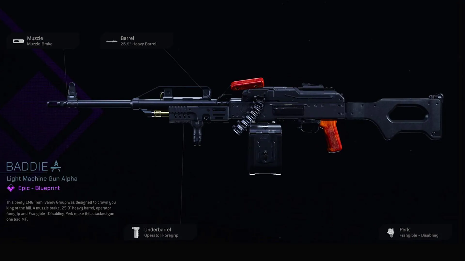The Baddie is a Weapon Blueprint available in Call of Duty: Modern Warfare and Call of Duty: Warzone.